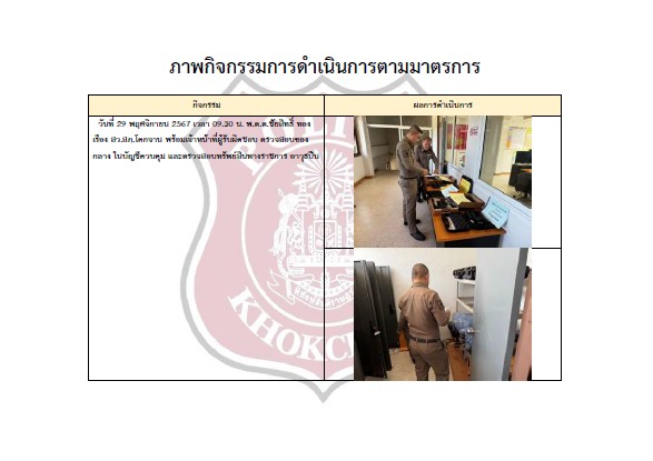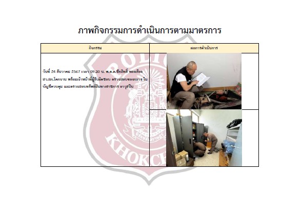 ตรวจสอบ และตรวจนับอาวุธยุทธภัณฑ์ ของสถานีตำรวจเพื่อให้มีความพร้อมต่อการใช้งานในภารกิจ
